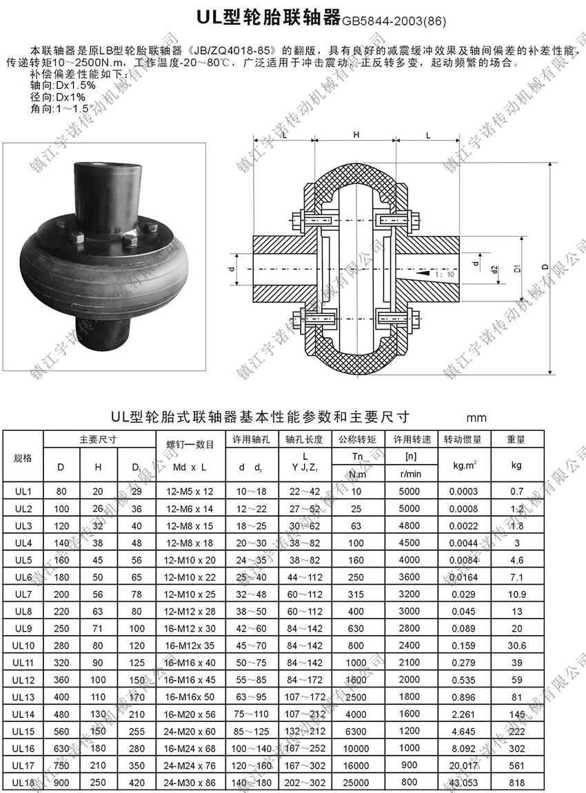 帶骨架結(jié)構(gòu)與其他兩種相比較,具有承載能力大、使用壽命長、裝拆方便等優(yōu)點,因此選定帶骨架式輪胎式聯(lián)軸器制訂為國家標(biāo)準(zhǔn)。輪胎式聯(lián)軸器具有較高的彈性,扭轉(zhuǎn)剛度小,減振能力強,補償兩軸相對位移的能力較大,有良好的阻尼,結(jié)構(gòu)簡單,不用潤滑,裝拆和維護方便,噪聲小,但承載能力不高,徑向尺寸較大,過載時產(chǎn)生較大的軸向附加載荷。適用于起動頻繁、正反轉(zhuǎn)多變、沖擊振動較大的兩軸聯(lián)接,可在有粉塵、水分的工況環(huán)境下工作,工作溫度為-20~80℃。