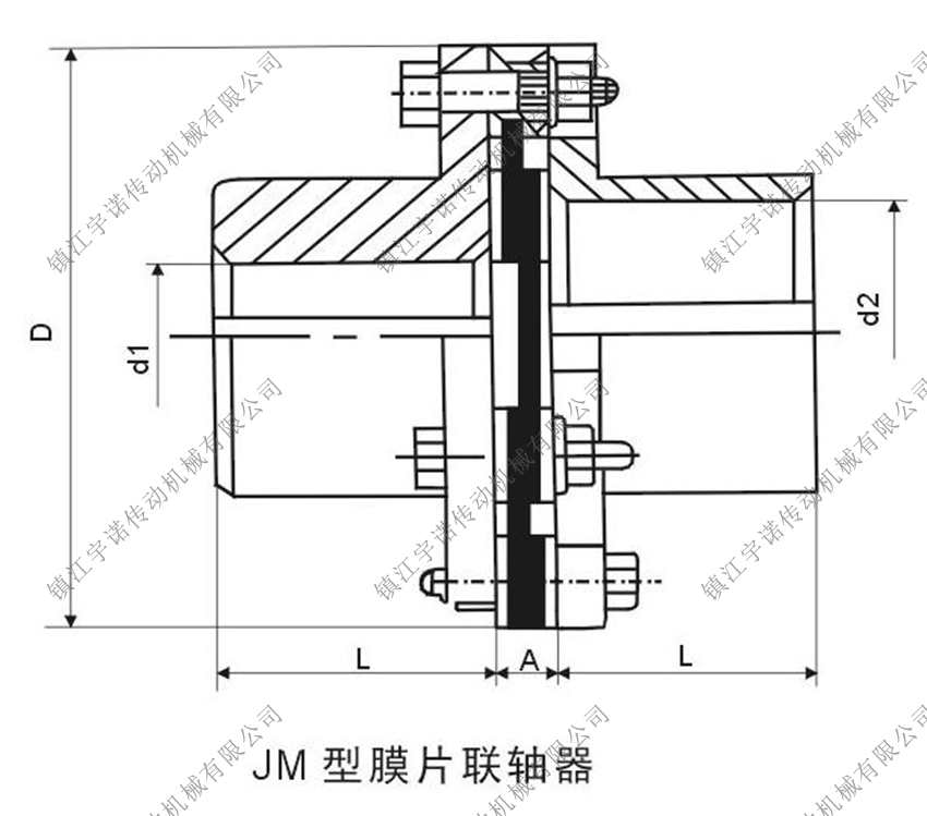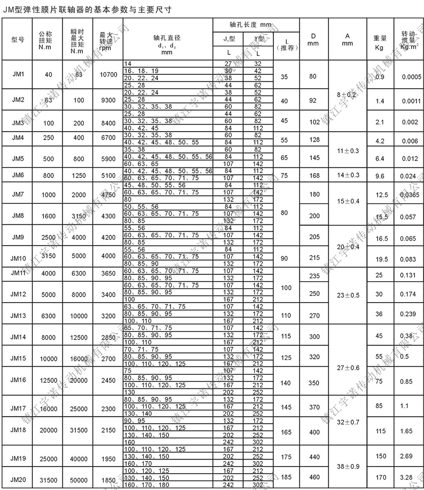 JM型基本型膜片聯(lián)軸器彈性變形來(lái)補(bǔ)償所聯(lián)兩軸的相對(duì)位移,是一種高性能的金屬?gòu)椥栽闲月?lián)軸器,不用潤(rùn)滑,結(jié)構(gòu)較緊湊,強(qiáng)度高,使用壽命長(zhǎng),無(wú)旋轉(zhuǎn)間隙,不受溫度和油污影響,具有耐酸、耐堿、防腐蝕的特點(diǎn),適用于高溫、高速、有腐蝕介質(zhì)工況環(huán)境的軸系傳動(dòng),廣泛用于各種機(jī)械裝置的軸系傳動(dòng),如水泵(尤其是大功率、化工泵)、風(fēng)機(jī)、壓縮機(jī)、液壓機(jī)械、石油機(jī)械、印刷機(jī)械、紡織機(jī)械、化工機(jī)械、礦山機(jī)械、冶金機(jī)械、航空(直升飛機(jī))、艦艇高速動(dòng)力傳動(dòng)系統(tǒng),經(jīng)動(dòng)平衡后應(yīng)用于高速傳動(dòng)軸系已比較普遍.與齒式聯(lián)軸器相比,沒(méi)有相對(duì)滑動(dòng),不需要潤(rùn)滑、密封,無(wú)噪聲,基本不用維修,制造較方便,可部分代替齒式聯(lián)軸器.膜片聯(lián)軸器在國(guó)際上工業(yè)發(fā)達(dá)國(guó)家應(yīng)用已很普遍,在實(shí)際應(yīng)用中一般采用接中間軸型,以提高兩軸線偏移補(bǔ)償性能.