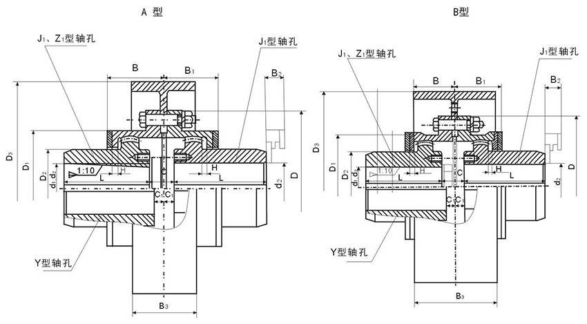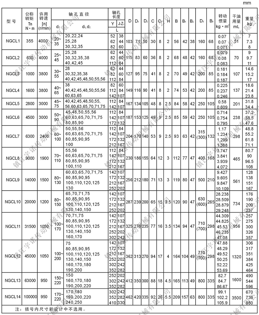 NGCL型帶制動輪鼓形齒式聯(lián)軸器在工作時,兩軸產(chǎn)生相對角位移,內(nèi)外齒的齒面周期性作軸向相對滑動,必然形成齒面磨損和功率消耗,因此,齒式聯(lián)軸器需在有良好和密封的狀態(tài)下工作。齒式聯(lián)軸器徑向尺寸小,承載能力大,常用于低速重載工況條件的軸系傳動,高精度并經(jīng)動平衡的齒式聯(lián)軸器可用于高速傳動,如燃汽輪機的軸系傳動。