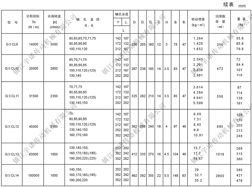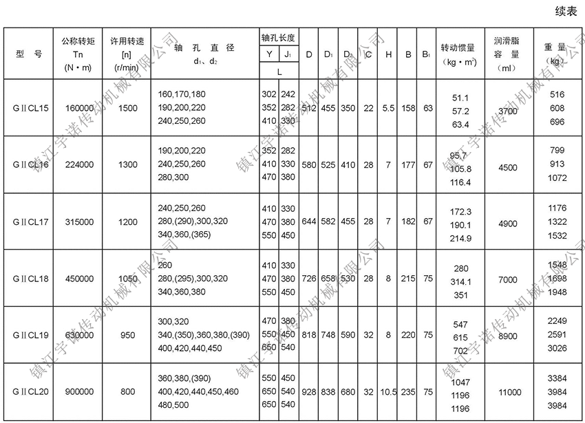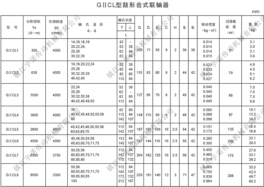 GⅡCL型基本型(窄型)鼓形齒式聯(lián)軸器密封端為整體型,可與Y、J1型軸伸聯(lián)接。齒間距小,允許相對(duì)徑向位移小,結(jié)構(gòu)緊湊,轉(zhuǎn)動(dòng)慣量小,適用于公稱轉(zhuǎn)矩為400-4500000N.m,聯(lián)接水平兩同軸線軸系傳動(dòng)。鼓形齒式聯(lián)軸器適用場(chǎng)合:常用于低速重載工況條件的軸系傳動(dòng),高精度并經(jīng)動(dòng)平衡的齒式聯(lián)軸器可用于高速傳動(dòng),如燃汽輪機(jī)的軸系傳動(dòng),如冶金、礦山、起重運(yùn)輸?shù)刃袠I(yè)、也適用于石油、化工、通用機(jī)械等各類重型機(jī)械的軸系傳動(dòng)。